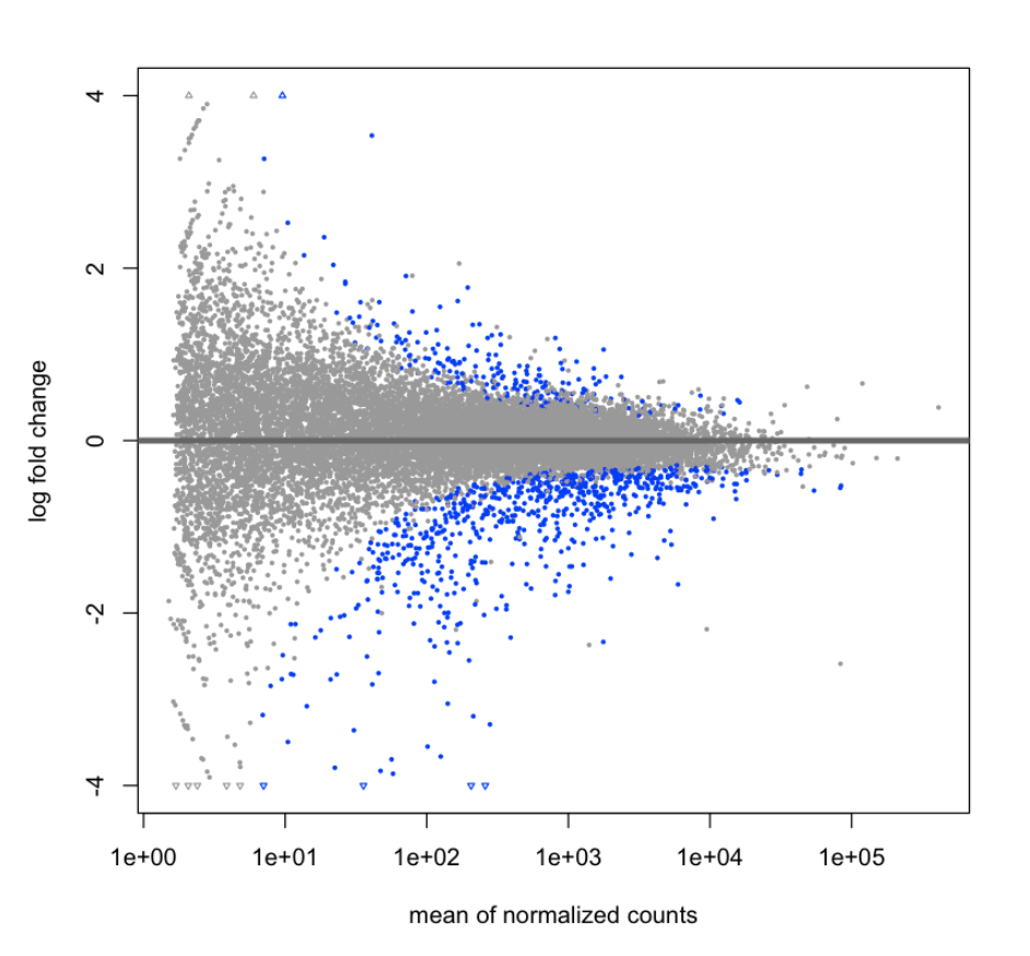 DESeq2::plotMA(results, ylim=c(-4,4))