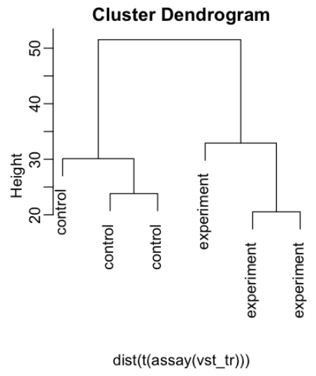 den<-plot(hclust(dist(t(assay(vst_tr)))), labels=colData(dds)$condition)
