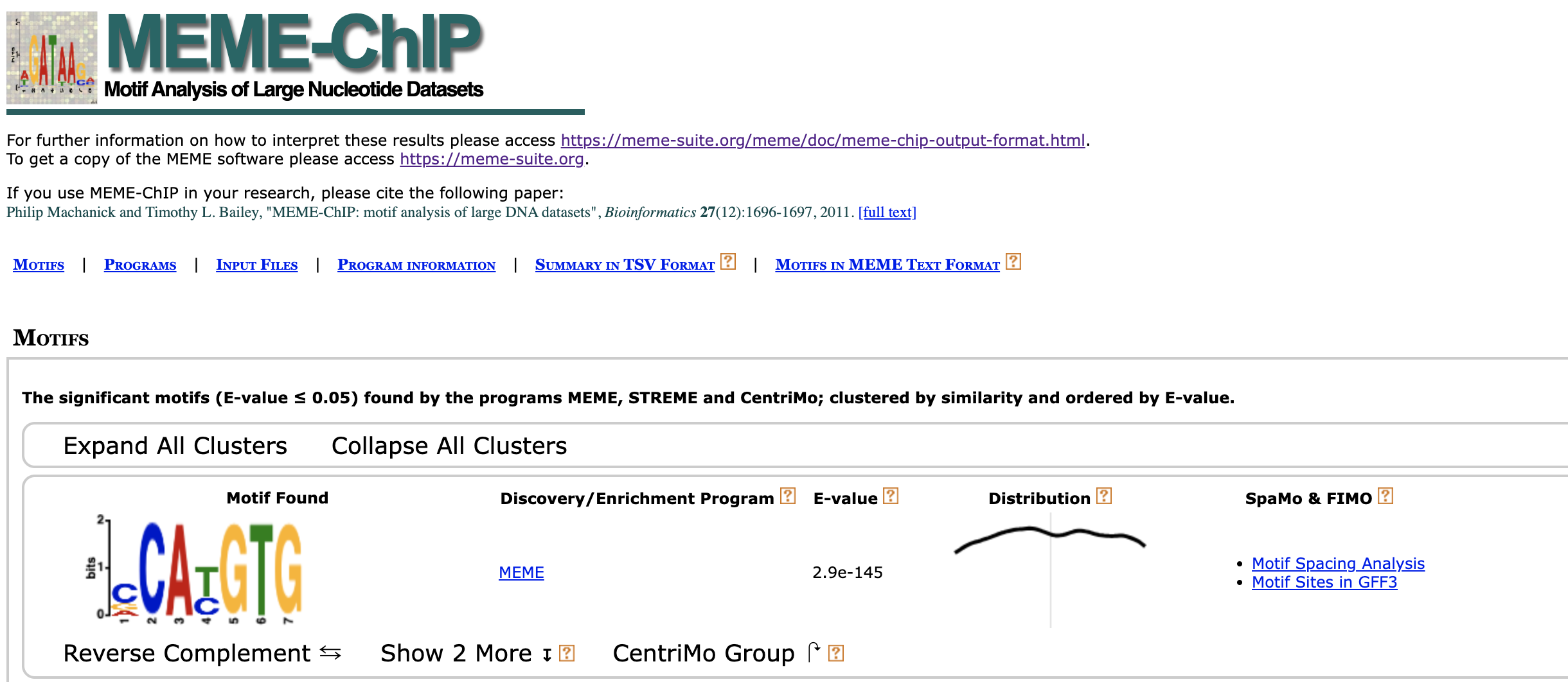 The top result of MEME-Chip output contains consensus myc binding site: CACGTG/CATGTG
