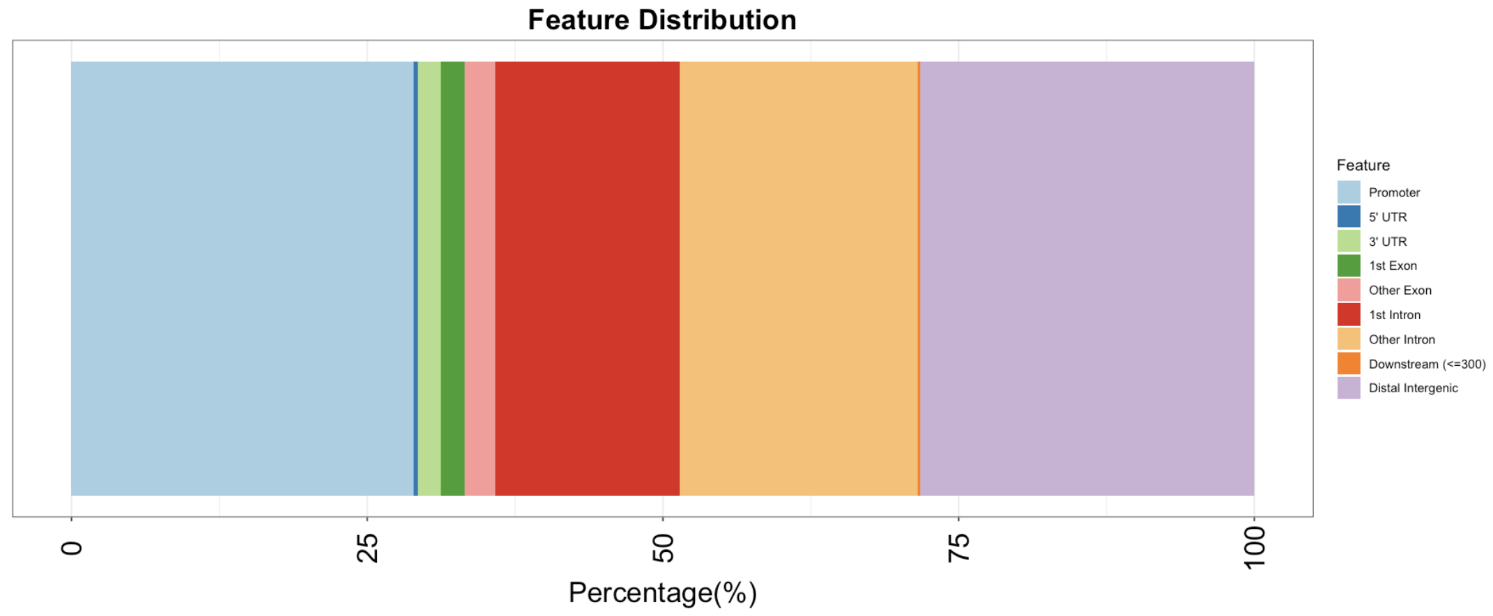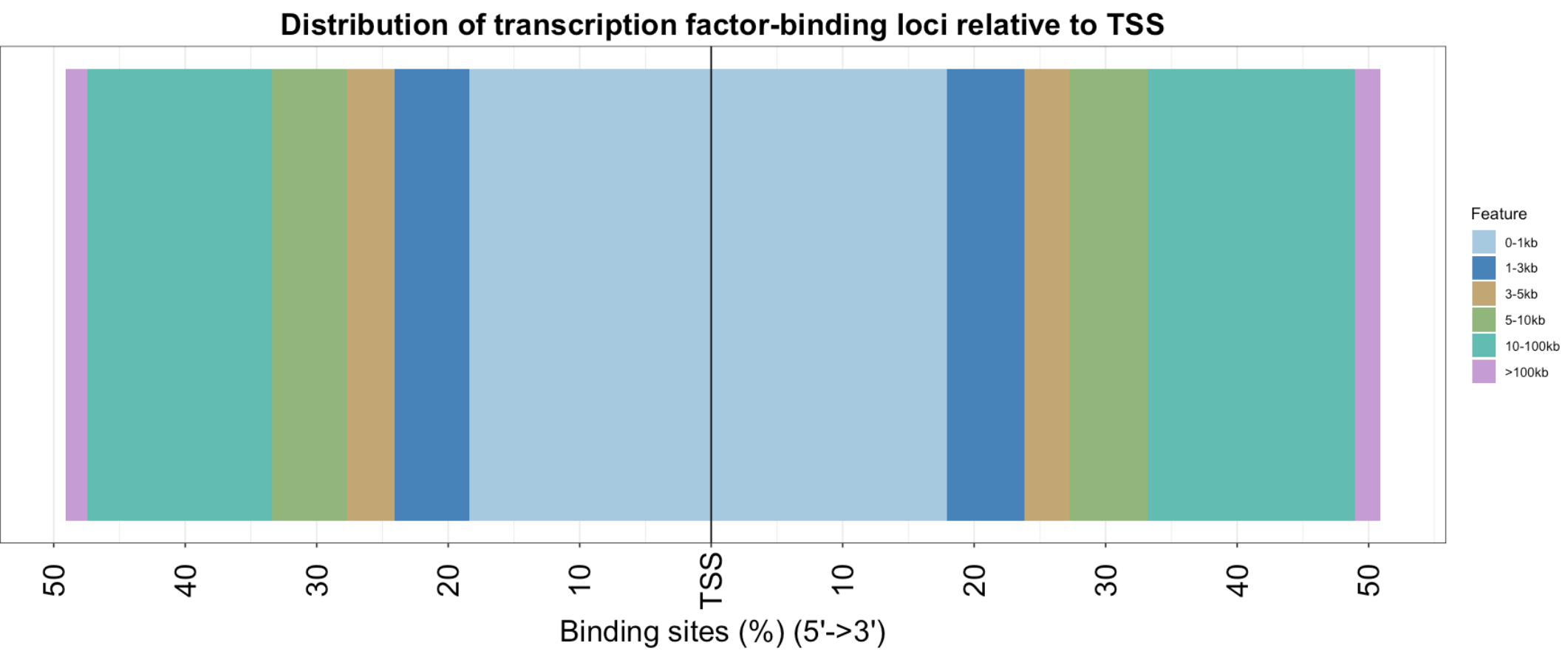 plotDistToTSS(peakAnno)+theme(axis.text.x = element_text(color = "black", size = 20, angle = 90, hjust = .5, vjust = .5, face = "plain"),